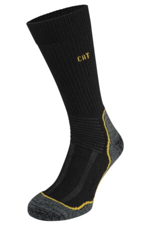 Die schwarze Grundfarbe mit gelbgesticktem CAT-Logo am Bund verleiht diesen Socken eine markante, unverkennbare Optik – ganz im Stil von Caterpillar.